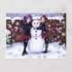 Deux filles prenant la pose près d'un bonhomme de neige.