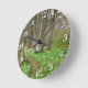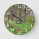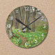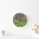Two girls picking flowers in spring forest round clock
