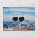 Two glasses of red wine against mountain background. View of snowy peaks in the mountains.