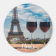 Two glasses of wine on Eiffel tower and Paris skyline background.