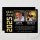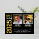 Announce your two high school graduates in style with this real foil graduation announcement and party invitation. Card is designed for two grads and features their photos with a simple and masculine design with sports jersey inspired lettering. Black, gold foil, and white colours.