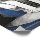 Poster in an illustration of two cats sit gracefully against a deep blue, abstract background. The realistic fur textures with bold linework and geometric elements, creates a modern, surreal atmosphere. Their expressive yellow eyes contrast strikingly with the cool-toned surroundings.