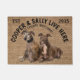 This welcome mat can be personalized with your dog’s name, the slogan can also be changed or you could use a picture of your own dog (make sure it's transparent). Text reads: Cooper & Sally Live Here…. All treats welcome.