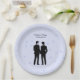 An elegant classic wedding plate with two grooms. The silhouettes give a romantic feel feel to this beautiful plate. This minimalist scene is perfect for your modern romantic wedding. This look will go well at any wedding season, spring, summer, fall, or winter. Great for a modern wedding, and perfect for a classical wedding too!