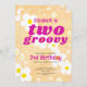 Two Groovy 2nd Birthday Yellow Flower Power Hippie Invitation
