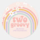 two Groovy Pastel rainbow 2ND birthday Classic Round Sticker