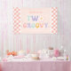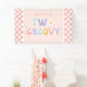 Two groovy! Retro chequered print with Daisies Birthday party banner in pink.