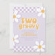 Two Groovy. Retro inspired 2nd birthday invitation with 70's style fonts and daisies and chequered pattern.