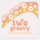 Retro inspired two groovy second birthday stickers with 70's style daisies and boho fonts and colours.