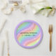Two Groovy Retro Pastel Rainbow 2nd Birthday Paper Plate