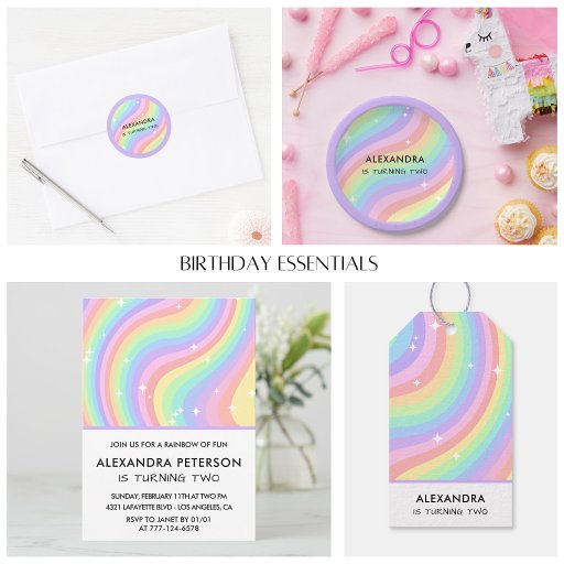 Two Groovy Retro Pastel Rainbow 2nd Birthday PartyDesigned by Sophie Chevalier