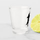This glass shot glass has two black silhouette bears holding hands and dancing together. Customize the Happy Dance text on the bears with the templates.