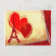 Eiffel tower of Paris France with two huge hearts and colourful background design. Perfect for the couple celebrating in Paris, France whether it's for a wedding, anniversary, engagement or other special occasion.