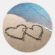 Beautiful, original photo of two hearts written in the sand along the blue ocean water to signify love and romance. Great concept for upcoming Valentines Day and summer weddings.