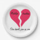 These paper plates are great for a Valentine's Day party, dinner or celebration. The design features two halves of a heart that match together. A personalized name is on each heart half and is easy to customize. The customizable words under the hearts say "our hearts join as one" and can be changed to your own words. Easy to customize. The colours are red and black. Fully customizable.