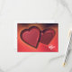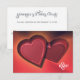 Two Hearts RSVP (Version 8), by Multiform, features an elegant arrangement of bold three-dimensional hearts on a red background. This modern design is part of a larger series of heart-based designs that can be easily personalized with your RSVP date.