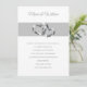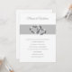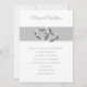Wedding invitation shown in colours of white and grey with a two hearts print with silver grey text.