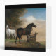 "Two Horses in a Meadow near a Gate" is a 1649 painting by Paulus Potter that depicts two horses standing on a rise in a meadow landscape with cattle. In the distance, there is a meadow with cows and the profile of a city.