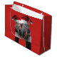 Two Horses Kissing with Santa Claus Hats on Large Gift Bag