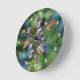 Two beautiful hummingbirds flying with purple flowers wall clock
