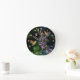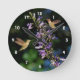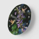 Two beautiful hummingbirds flying with purple flowers wall clock