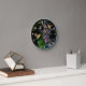 Two Hummingbirds In Flight With Flowers Wall Clock