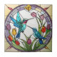 Two Hummingbirds & Tulip Flower Faux Stained Glass Tile