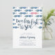 Nos invitations de fête de fiançailles côtières chic d'été présentent un banc de poissons de différentes nuances de bleu, avec un couple de poissons s'embrassant dans un rose corail contrastant. "Deux poissons de moins dans la mer" apparaît dans une écriture en calligraphie au pinceau, avec les détails de votre fête de fiançailles en dessous.