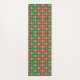 Two images showcasing a rectangular patterned fabric. The top image shows the fabric vertically, and the bottom image shows it horizontally. The pattern features a repeating design with green, red, and white accents on a brown background, creating a festive and intricate look.