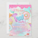 Delightful invitation features yummy doughnuts and desserts with pastel watercolor frosting and lots of rainbow coloured srpinkles!