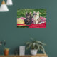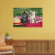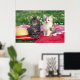 Two Kittens Sitting On A Red-Coloured Blanket Poster