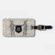Two knights in line drawing form make up this personalized luggage tag.