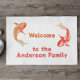 Doormat motif with a fish theme. Drawing of two Koi in orange and red.