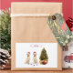 Not one but two yellow labs are dressed in their Christmas Santa hat and bow tie. They have left a trail of muddy paw prints as they pose very delighted. A decorated Christmas tree lights up the background of this “punny” holiday gift!