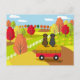 Two Labradors on the hay cart in Fall Postcard for Labrador Fans!! Chocolate Labrador and Black Labrador are stunned by the beautiful autumn view. Labrador Cartoon Design created by Naomi Ochiai.