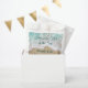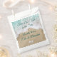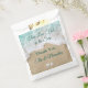 The playful and fun saying, Two Less Fish in the Sea accents this Wedding Favour Bag on a background of turquoise water, and beach sand. If you need help customizing this item, or need additional coordinating items, just contact us at prettyfancyinvites@gmail.com with your request.