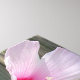 two light pink hibiscus flowers with dark pink centres against a weathered fence