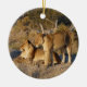 TWO LIONESSES TOGETHER CERAMIC ORNAMENT