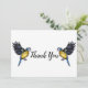 traditional watercolor design of two little blue and yellow coloured birds saying thank you on a card.