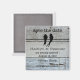 This rustic save the date magnet features two love birds sitting on a wire against a wooden background. Perfect for an outdoor wedding.