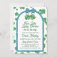 Are you about to welcome two little lucky charms into your life? This blue and green girl twins baby shower invitation has a pair of four-leaf clovers tied with a blue bow. The St Patrick's Day baby shower invitation wording is framed by a blue arch. The background features a matching clover pattern, all in a charming hand-drawn style.