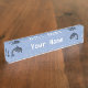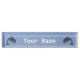 This acrylic desk name plate is light blue with a ocean blue dolphin with a white stomach in a jumping position at each end. Customize your name with the template.