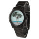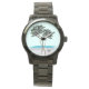Palm trees at the shore, unisex watch design with customizable watch bands. Two intertwined palm trees at the edge of the ocean, is the mixed-media image.