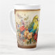 Two Parakeets and Flowers Latte Mug