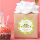 Two cute African babies in a pea pod with baby shower bunting banner and a pea green polka-dot background thank you sticker label.