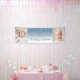 Welcome guests with this chic, glamorous 50th birthday party photo banner, featuring a sparkly blue faux glitter drip border and blue ombre background. Easily replace the two sample images with photos of the guest of honor. Personalize it with her name in blue handwriting script beneath the words "Happy 50th Birthday" in sans serif font--or edit to any birthday year.