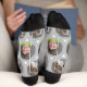 These cute two photo child or pet photo grey custom socks feature two photos -- of either your children, baby, dog, cat, mom, dad, grandparent, or any other person --in a row pattern with white triangles, and are the perfect custom socks to feature your child, husband, wife, dog, cat, or anyone you love! This is the perfect gift for the sock lover and a great Christmas stocking stuffer!