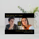 Double graduation party invitations featuring a stylish black background that can be changed to any colour, photos of the two graduates, and a elegant real gold foil joint celebration template that is easy to personalize. NOTE: Foil can be changed to silver or rose gold.