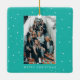 Two Photo Turquoise light blue Minimalist Snowfall High School College Best Friend Snowfall Christmas Holiday Ceramic Ornament