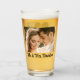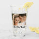 Custom pint glass featuring your photos with personalized name or message on decorative serif typography on both sides! Test it out to see how it looks on this page! Upload your photos and edit the text by clicking "Personalize". Made with top quality Libbey barware. 16 ounces.